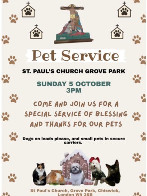 This special service is to celebrate and bless our pets. The service will take place in the garden at St Paul's and will be a fun time of celebration and treats! Please spread the word, and come and join us with your pet. Dogs on leads please, and small pets in secure carriers.
