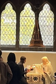 It is not just babies who can be christened. Older children and adults too are also very welcome to be baptised at St Paul's. Below you see Canon Julian Reindorp baptising Lilya, Ines and Mary Lou, and on a separate occasion, Olivia van Exter.