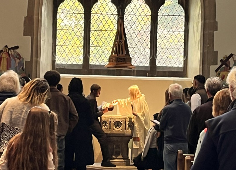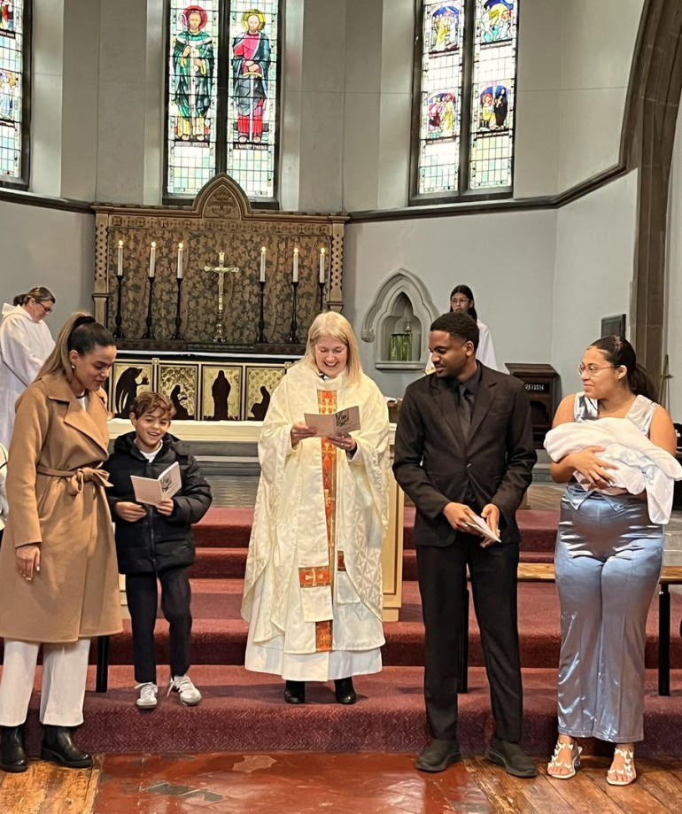 A christening can be part of our Sunday morning service, or we can arrange a special service at a time that suits you. You are very welcome to use our lovely church garden or the hall which adjoins the church for a party following the christening, or to have a drinks reception at the back of the church and there are lots of photos of the church garden on the Venue Hire page of this website. The lovely pictures above and below are of the christening services for Florence Cosby in September 2024 and of the baptisms of Hamius and Mason in October 2025.