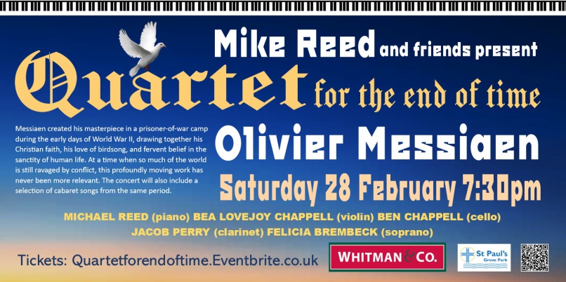French composer Messiaen created his masterpiece in a prisoner-of-war camp during the early days of World War II. Drawing together his Christian faith, his love of birdsong, and fervent belief in the sanctity of human life, he wrote the piece for the instruments and players available to him in the camp. At a time when so much of the world is still ravaged by conflict, this profoundly moving work has never been more relevant. This unique performance on 28 February 2026 included a short introduction to the piece by Michael Reed. You can see the four musicians rehearsing this extraordinary work at St Paul's here.